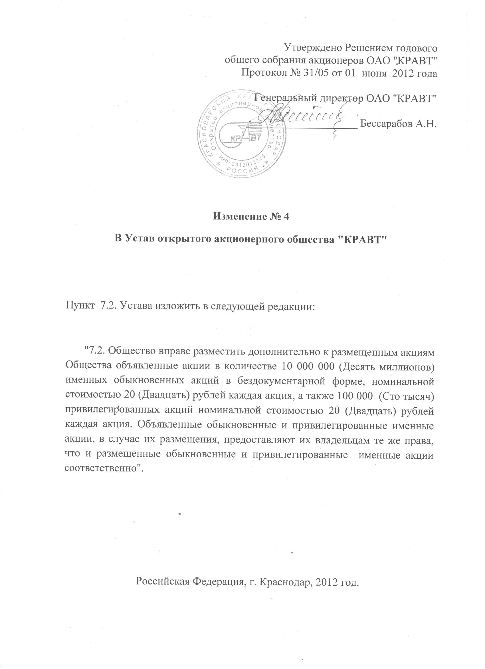 15 | Изменение в Устав № 4 | 27.06.2012 | 27.06.2012 |